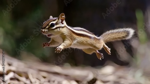 Fototapeta premium Adorable chipmunk in mid-air leap.