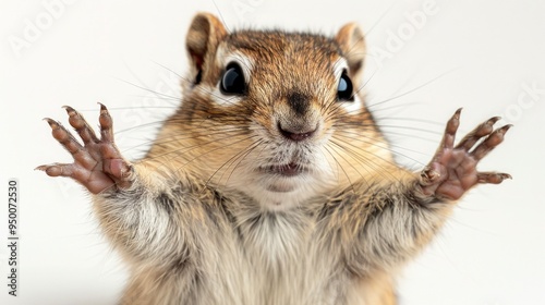© Tuong, Fototapeta premium Adorable Chipmunk Strikes a Pose with Raised Paws - Isolated Cutout