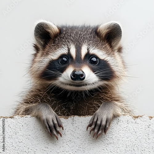 © Wuttichai, Fototapeta premium Adorable Chubby Raccoon with Tiny Paws on Blank White Background