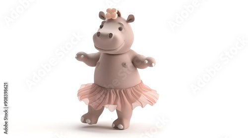 © pkproject, Naklejka premium Adorable Clay Hippo Wearing Tutu Dancing in Pastel 3D Art Style
