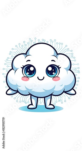 © xuyi, Obraz premium Adorable Cloud Character with Big Eyes and Rosy Cheeks.