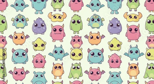 Fototapeta premium Adorable collection of colorful cartoon monsters with diverse expressions and...
