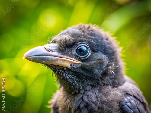 © Sirinporn, Fototapeta premium Adorable Crow Chick Close-Up: Documentary Style Wildlife Photography