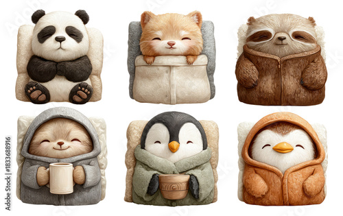 © Putra, Fototapeta premium Adorable Cute Animal Collection with Cozy Expressions on Transparent Background