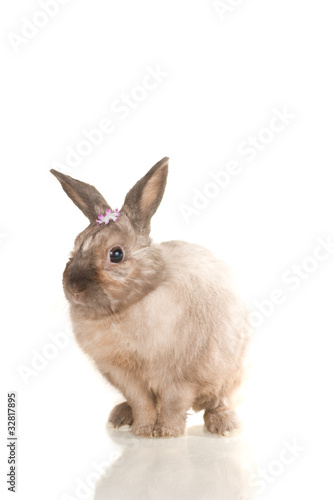 Obraz premium Adorable cute rabbit sit on white background with flowers