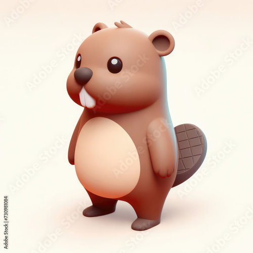 Fototapeta premium Adorable 3D beaver on a light background. 3D clay cartoon model of a beaver.