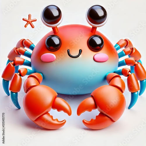 Fototapeta premium Adorable 3D Kawaii Crab with Big Eyes and a Sweet Little Smile