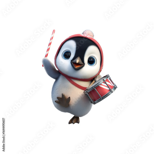 Obraz premium Adorable 3D Render of a Penguin Drummer Celebrating Christmas