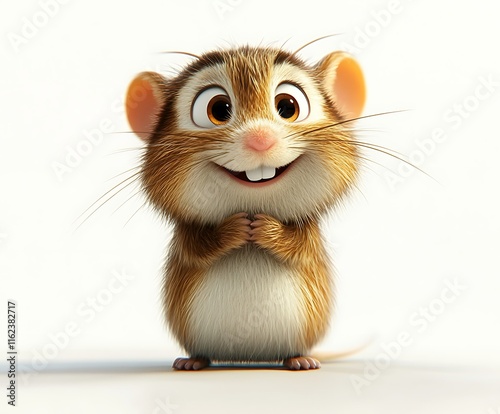 Obraz premium Adorable 3D rendered cartoon mouse with big eyes and a happy expression,...