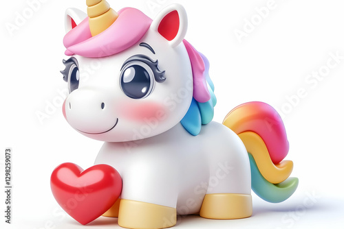 © Siasart Studio, Naklejka premium Adorable 3D Unicorn Illustration with Heart