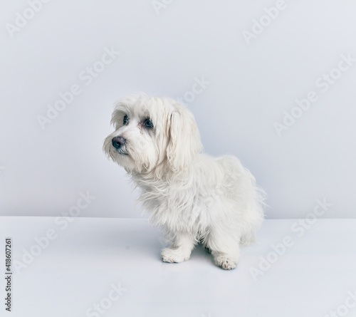 Fototapeta premium Adorable dog over isolated white background.