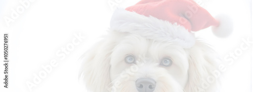 © ANASTASIIA, Obraz premium Adorable dog wearing santa hat against white background