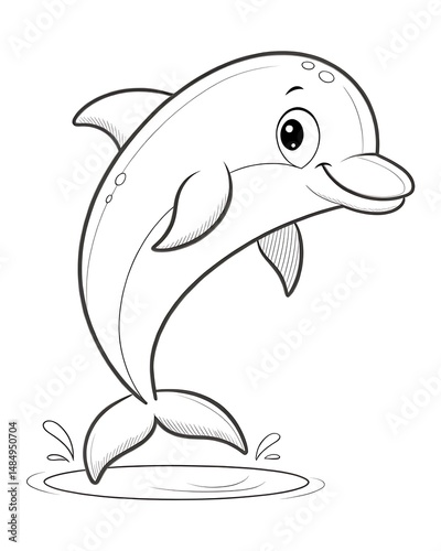 Fototapeta premium Adorable Dolphin Coloring Page for Kids Fun and Easy Printable Ocean Animal Drawing