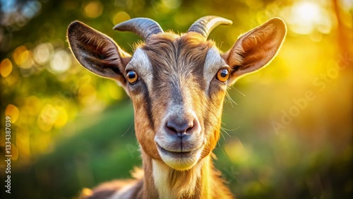 © Arnada, Fototapeta premium Adorable Domestic Goat Portrait: Fluffy Brown Goat Close-Up
