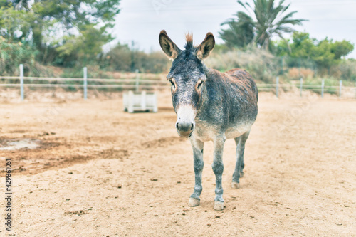 © Krakenimages.com, Fototapeta premium Adorable donkey walking at the farm.