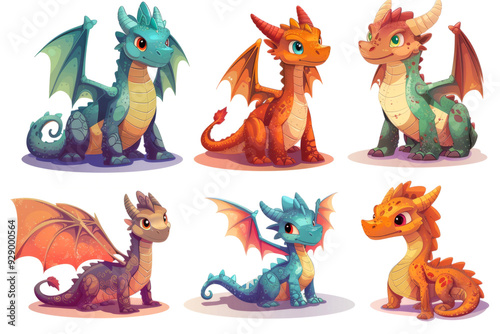 © Michael, Naklejka premium adorable dragons posing on a light background