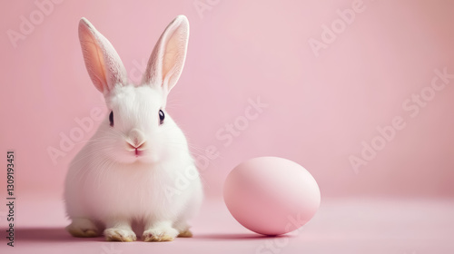 Obraz premium Adorable Easter bunny among Easter eggs and spring.