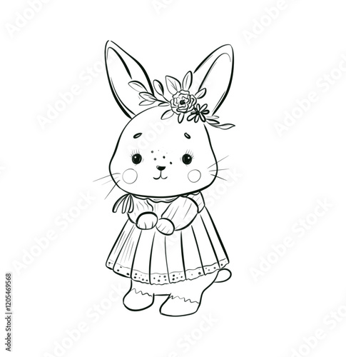 Obraz premium Adorable Easter Bunny Coloring Page for Kids with Simple Black and White...