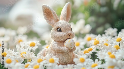 Fototapeta premium Adorable Easter Bunny Figurine in a Spring Garden