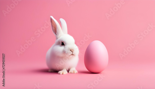 © PhotoPhreak, Obraz premium Adorable Easter Bunny: Hatching from Pink Egg