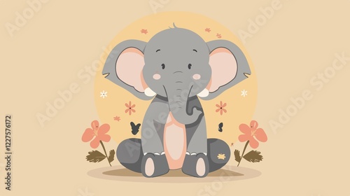 © liam, Fototapeta premium Adorable Elephant Sitting Flat Vector Illustration