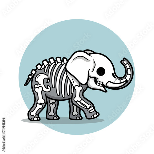 Fototapeta premium Adorable Elephant Skeleton Walking Pose Cartoon Illustration