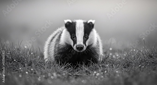 © Agung, Obraz premium Adorable European Badger in Monochrome Wildlife Photography
