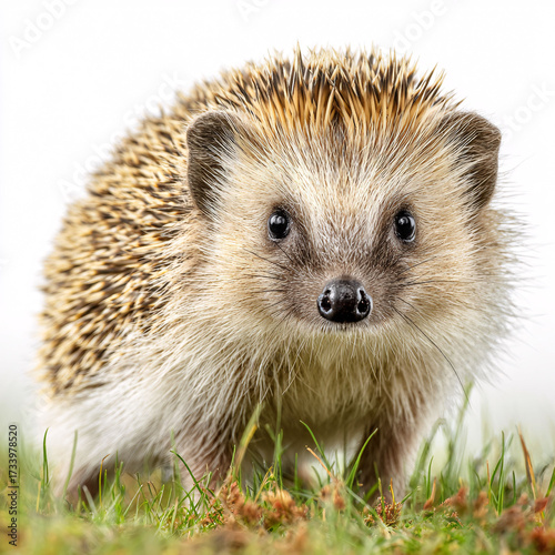 © Roman_Studio, Fototapeta premium Adorable European hedgehog foraging in lush green grass, close-up wildlife portrait, natural light.