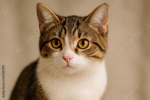 © TheWaterMeloonProjec, Fototapeta premium Adorable feline with brown and white fur in a close-up shot