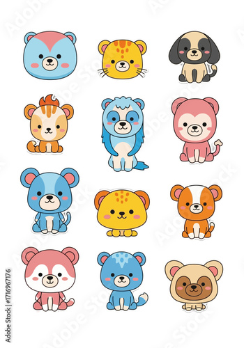 Obraz premium Adorable Flat Cartoon Animals Vector Sticker Collection