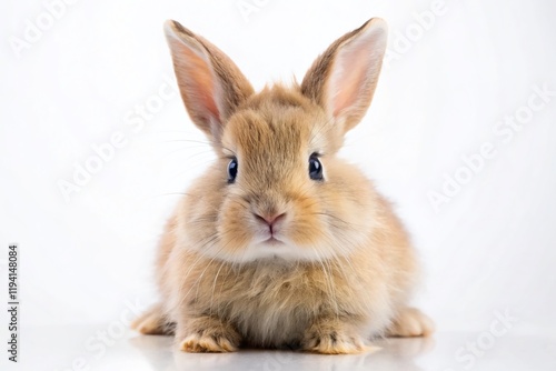 Obraz premium Adorable Fluffy Easter Bunny Rabbit on White Background - Cute Pet Stock Photo