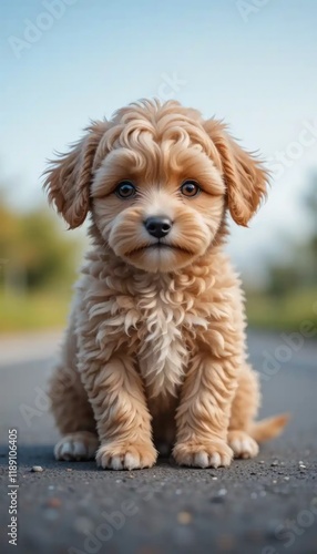 © MumarProject, Fototapeta premium Adorable Fluffy Goldendoodle Puppy Posing Outdoors on a Sunny Day