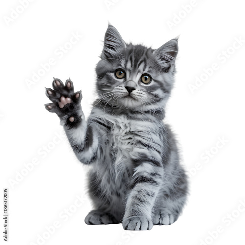 © Habib, Fototapeta premium Adorable fluffy grey kitten waving its paw hello