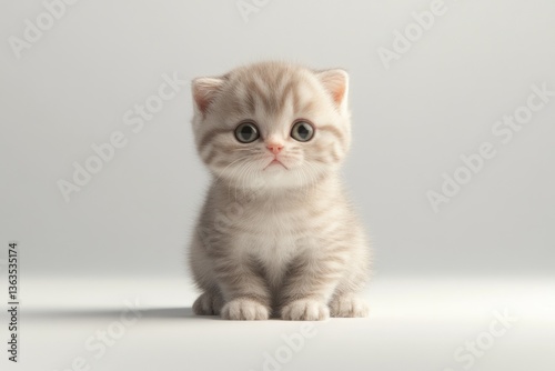 © Anjali, Obraz premium Adorable fluffy kitten with big eyes, sitting on a white background.