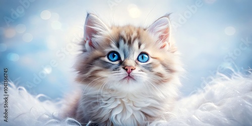 Fototapeta premium Adorable Fluffy Kitten with Bright Blue Eyes, Cute Pet Portrait for...