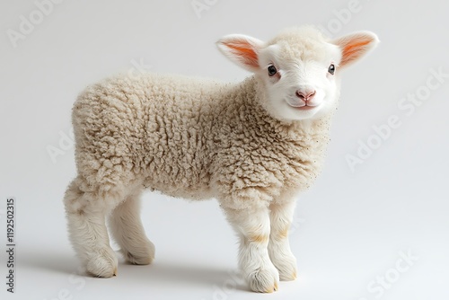 © SEH, Fototapeta premium Adorable Fluffy Lamb Standing Against White Background
