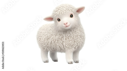 © Cinema Studio, Obraz premium Adorable Fluffy Lamb with Expressive Eyes on a Transparent Background for Various Design Projec