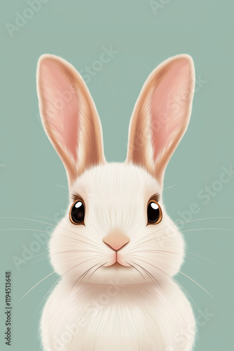 Obraz premium Adorable fluffy rabbit with tall ears and a soft pastel green background