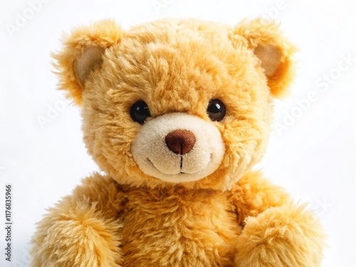 Fototapeta premium Adorable Fluffy Teddy Bear, Macro Photography, White Background Stock Photo