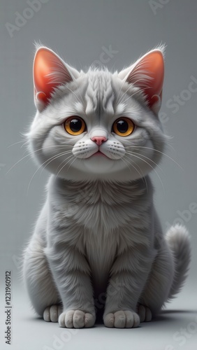 © AMK , Obraz premium Adorable fluffy white kitten sitting and staring with big orange eyes