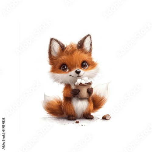 Obraz premium Adorable Fox Cub Enjoying Hot Chocolate with Marshmallows