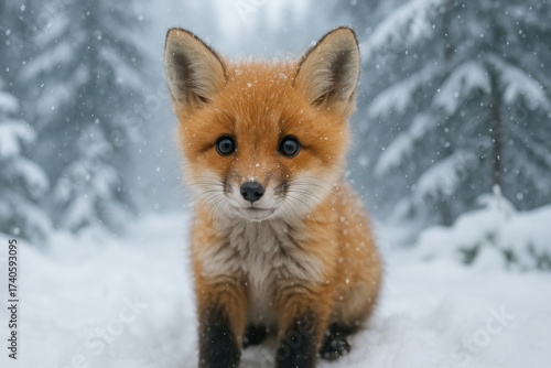 © Rawpixel.com, Fototapeta premium Adorable fox cub in snow