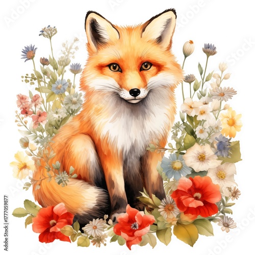 © Studicon, Obraz premium Adorable fox sitting amidst a vibrant array of wildflowers