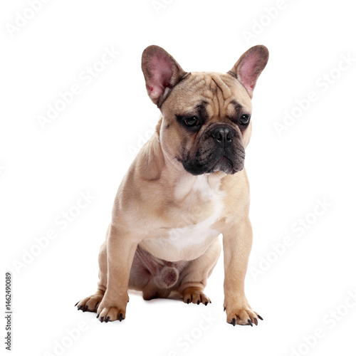 Fototapeta premium Adorable French bulldog dog sitting on white background