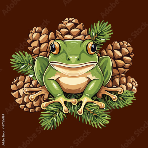 © firstcolor, Fototapeta premium Adorable Frog Character Surrounded by Acorns and Pinecones