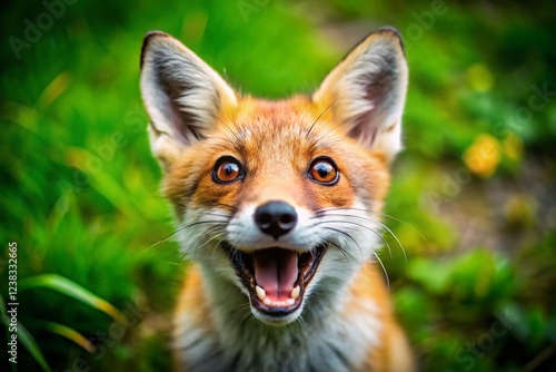 Fototapeta premium Adorable Furry Mammal Joyful Demeanor Wide Open Mouth Bright Eyes Low Light Photography Stock Photo