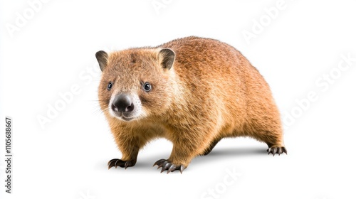 Fototapeta premium Adorable Furry Woodland Creature Posing on White Background