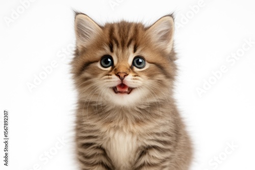 © TheWaterMeloonProjec, Obraz premium Adorable fuzzy kitten against a plain white backdrop with a touch of magic