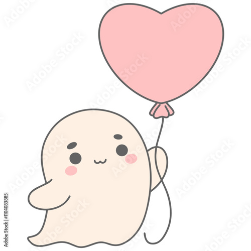 Fototapeta premium Adorable Ghost with Heart Shaped Balloon