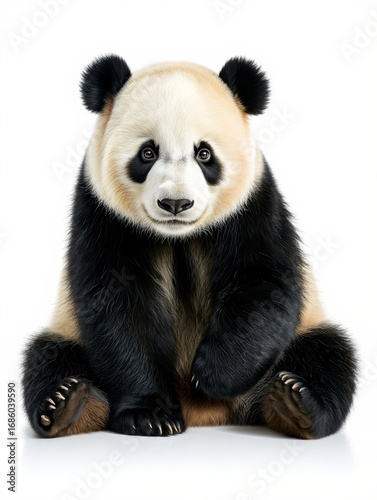 Fototapeta premium Adorable Giant Panda Cub Sitting on White Background